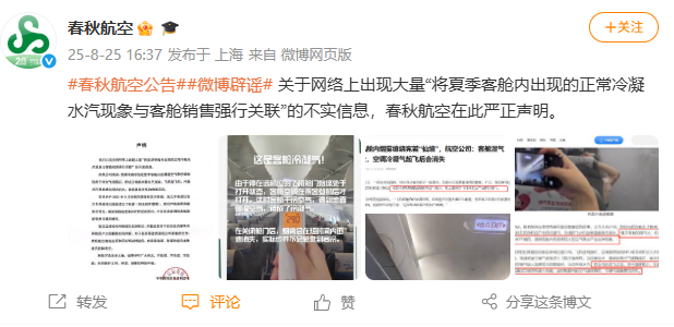 8月25日,@spring Airlines发表了一份声明:这里的Spring Airlines认真地认为,有大量的互联网信息“与Tag加热的正常蒸气现象密切相关,并带有机舱销售。” Spring Airlines表示,经过验证,视频显示标签上的潮湿空气与空调产生的干燥和冷空气相遇,形成了普通CO的蒸气蒸发。平面后,冷凝蒸气的现象将迅速消失。这种现象是一种常见的身体反应。 Spring Airlines表示,该公司在2023年8月做出了回应并拒绝了谣言。近年来,它也c通过各种官方渠道向乘客开辟了流行科学(有关详细信息,请参见附带的屏幕截图)。该公司强烈设定了机舱要求,以确保机舱温度保持在舒适的范围内,并且没有故意降低机舱温度和出售毯子的情况。该公司已收集了相关在线八卦的全面证据,并敦促媒体和在线用户发布不正确的信息以立即删除内容。为了损害备受企业的任何恶意行为,春季航空公司将根据法律采用法律方法,以审判,该法律承担着与之相关的生物的法律责任,这些生物是恶意传播谣言和传播谣言的法律责任。作为一架便宜的飞机,毯子,饮用水等,将在春季航空公司的飞机中收取费用。据报道,许多乘客以前曾抱怨过,乘坐春季航空公司和空调时感到很冷在机舱里,就像冷藏一样。我要求空姐准备毯子以避免感冒,但有人告诉飞行没有免费提供毯子,我不得不扫描代码以每人购买15元。一些乘客询问了故意降低的机舱温度,以指导购买毯子。但是一些网民还说,价值每人15元的全新毛毯可以回家,而且价格是可以接受的。此外,一些网民还抱怨廉价飞机“收取随机费用”,座位选择费和审查行李费比机票贵。但是,不可否认的是,许多乘客认为,春季航空公司的门票价格“非常好”。当相同的路线大约是同一时间时,春季航空公司的票价有时比一定时间的服务飞机便宜一半。根据官方网站的说法,Spring Airlines是2005年7月18日的首次航班,也是中国第一批私人飞机之一。到八月2025年,Spring Airlines有134个空中客车A320飞机系列,平均为7.76年。航点涵盖了中国,东南亚和东北亚的主要城市和旅游城市,每年运营230多个航线和运输。值得一提的是,作为“航空业的Pinimuo”,Spring Airlines,也称为“航空绿色汽车”网民,目前是中国的“最视觉”飞机。以前,中国的主要飞机最近宣布了他们的2024年年度报告。春季航空公司在2024年运营的航空公司同比增长了11.5%,达到200亿元人民币,与股东相关的净利润增长了0.69%,同比增长到22.73亿元人民币,与股东相关的净利润和股东的净利润增长了1.07%,达到1.07%,至22.244元。相比之下,就三架主要飞机而言,甚至中国航空,中国东部航空和奇斯特恩航空公司在2024年提高了收入,所有这些都面临着各种DEG的损失里斯(Rees)分别达到1666.99亿元人民币,13212亿元人民币和174224亿元人民币的营业收入,总收入为47343亿亿元14.05%; Net profit of -237 million yuan, -4.226 billion yuan, and -1.696 billion yuan respectively, with a total net income of -6.159 billion yuan, one year -a -a increase of 54.12%.就私人航空而言,六月航空公司和中国航空公司在2024年都获得了收入,净收入分别为9.14亿元和2.68亿元。在当前的市场环境中,控制成本的能力会影响公司的盈利能力。 2024年,弹簧飞机成本单位为0.316元,比去年同期降低了3.3%;非石油成本的单位为0.205元,比去年同期减少了1.7%,比去年同期降低了0.1%。 2024年,飞机上列出的第二大收入的成本单位六月航空公司(Juneyao Airlines)逐年下降5.56%至0。34元,而非成本单位同比下降8.7%至0.21元。中国航空协会的较早通知指出,“空中乘客水平运输市场繁荣的现象,受影响较小。最终的道路控制赚钱。飞机的aul。它还减少了管理维护项目的困难,并降低了飞行员,飞行与会人员和C成员的培训的复杂性。它不仅可以节省取回和维护飞机的成本,而且春季航空公司还节省了员工培训成本,并因下降而杀死了许多目标。春季航空公司和全方位服务飞机之间的另一个区别是控制成本的主要方法,即,春季航空公司飞机没有头等舱或商务类,而是经济阶层。该单一小屋比通常运行具有两个机舱布局的A320飞机的航空公司可以提供10%至15%的椅子,并且可以有效地解散单位成本。但是,坐着春季航空公司的成本的控制不会停止。 2015年,Spring Airlines推出了A320飞机,并带有新布局的空中客舱。椅子的数量从180张椅子增加到186椅子,而不会改变间隙。到2024年底,ERE是92 186 A320椅子飞机。 2020年,引入了第一个240个座位的A321NEO飞机。到2024年底,该公司拥有12架A321NEO飞机。此外,据报道,春季航空公司通过更改将乘客容量提高近40%来缩短椅子之间的距离。此外,在控制方面,春季航空公司还追求“两个低点” - 低成本销售和低管理成本。在2024年,春季航空公司的销售成本为2.49亿元,行政成本为2.72亿元人民币,分别占总成本的1.43%和1.57%。 ITOR不仅少于三个主要飞机,而且比六月航空公司的成本和比例相似。降低成本的春季航空公司还努力开放其资源,以增加春季航空公司的收入。借助国外廉价飞机的商业模式,春季航空公司分开了舱室餐饮,行李,选择和其他产品董事会上的全方位服务和付费董事会产品和服务的e并单独出售。此外,Spring Airlines还扩展了其产品和服务,包括空中票,保险,每人许多席位,行李满意卡等。在2024年,它达到了10.3亿元的Spring Airlines的10.3亿元人民币,高达10.3亿元人民币,年龄增长了14.44%,增长了14.44%,比9亿YUAN增长了20223年,相比增